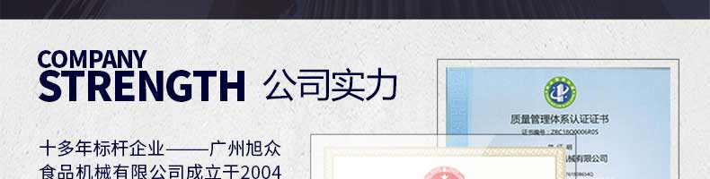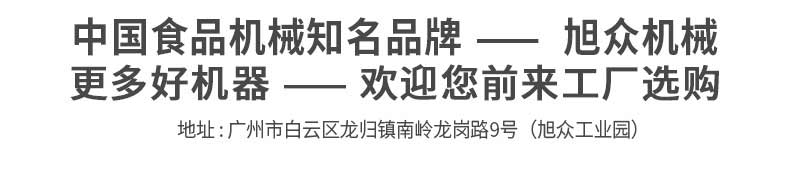 廣州旭眾食品機(jī)械有限公司是一家集科研開發(fā),生產(chǎn)設(shè)計(jì),營(yíng)銷服務(wù)為一體的現(xiàn)代化生產(chǎn)企業(yè)。現(xiàn)代化生產(chǎn)車間,精湛制造技術(shù),所產(chǎn)機(jī)械歷經(jīng)市場(chǎng)重重考驗(yàn),不斷贏得海內(nèi)外客戶的贊譽(yù)。