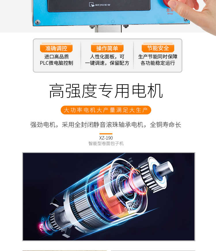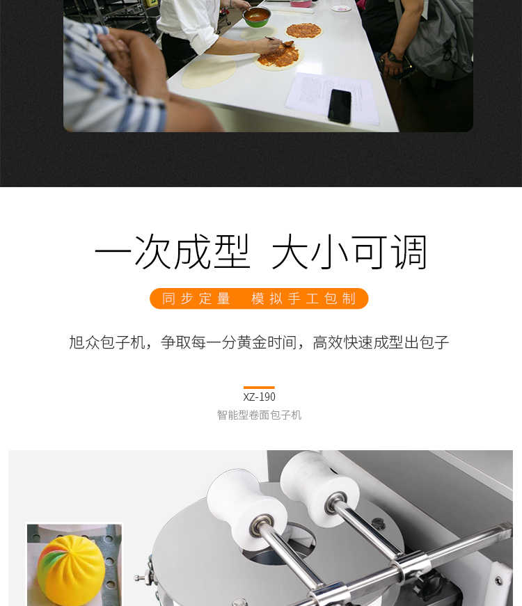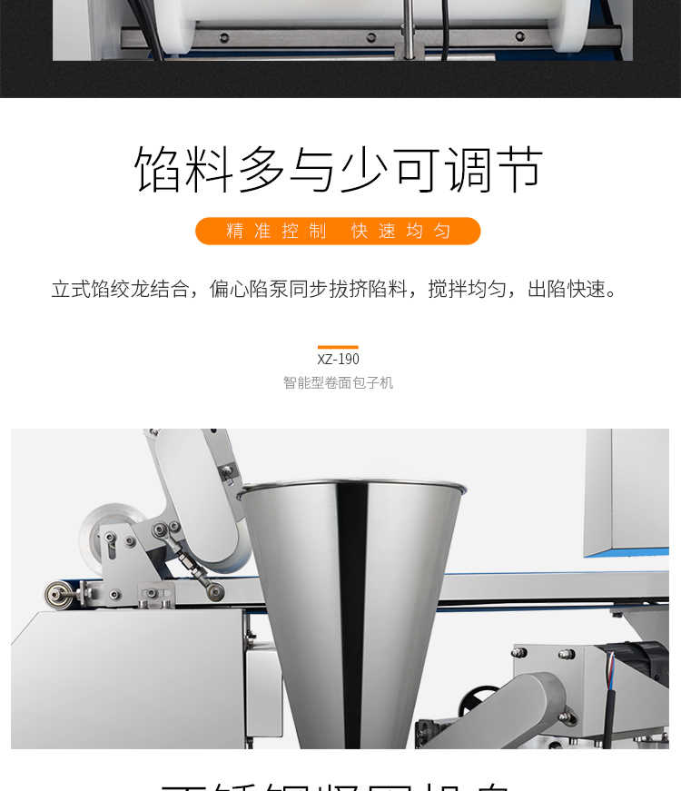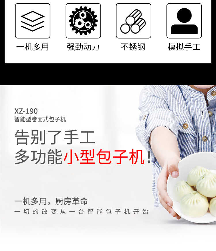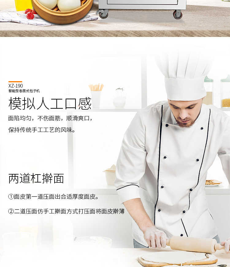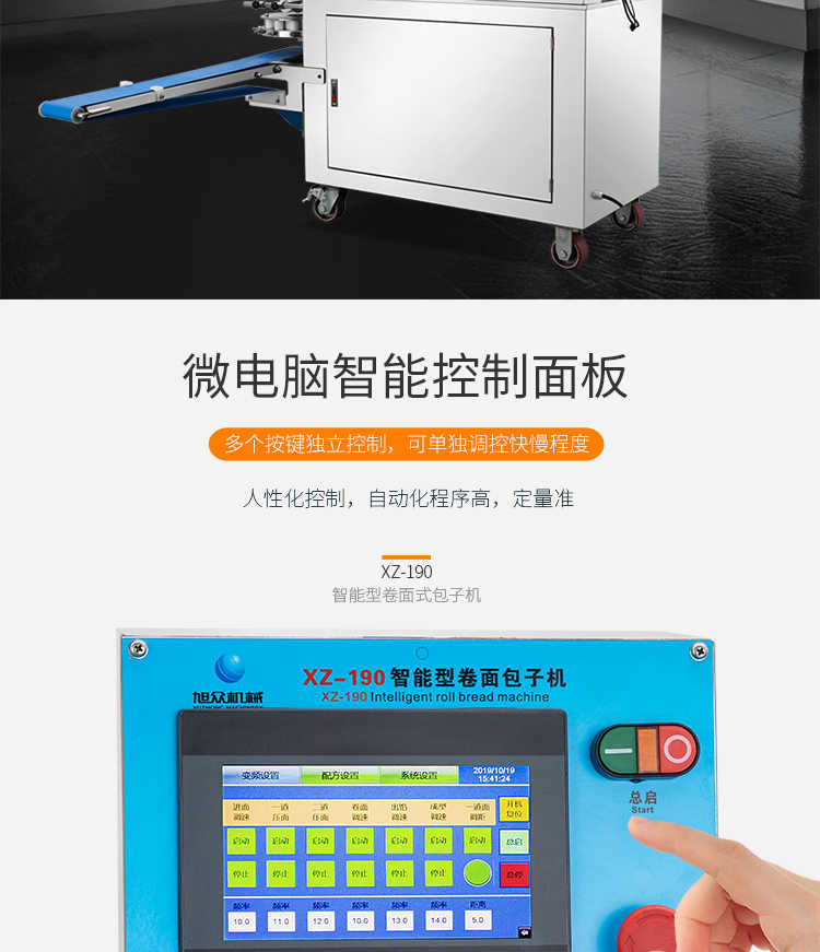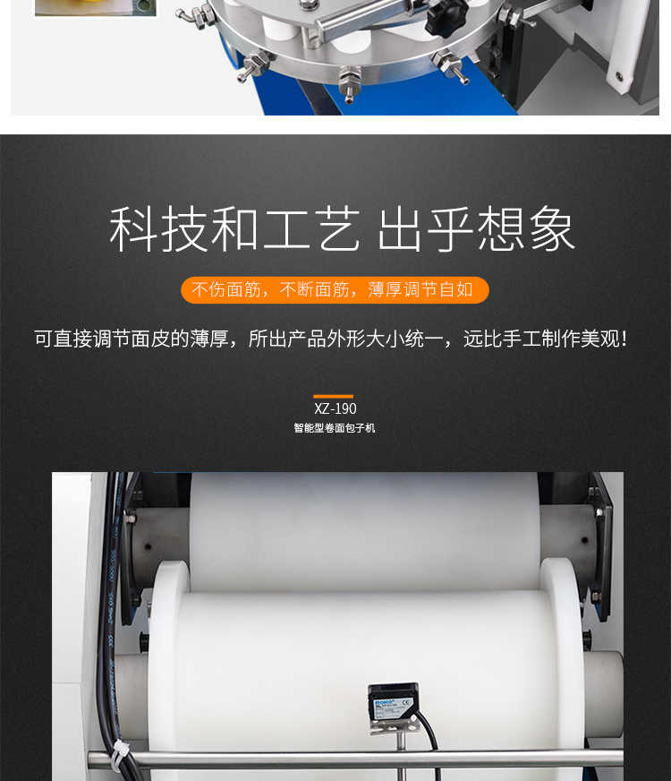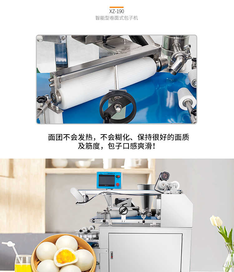XZ-190智能型卷面式包子機,科技和工藝出乎想象不傷面筋,不斷面筋,薄厚調(diào)節(jié)自如可直接調(diào)節(jié)面皮的薄厚,所出產(chǎn)品外形大小統(tǒng)一,遠(yuǎn)比手工制作美觀!
