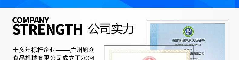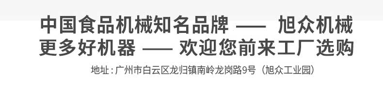 廣州旭眾食品機(jī)械有限公司是一家集科研開(kāi)發(fā),生產(chǎn)設(shè)計(jì),營(yíng)銷(xiāo)服務(wù)為一體的現(xiàn)代化生產(chǎn)企業(yè)?,F(xiàn)代化生產(chǎn)車(chē)間,精湛制造技術(shù),所產(chǎn)機(jī)械歷經(jīng)市場(chǎng)重重考驗(yàn),不斷贏得海內(nèi)外客戶的贊譽(yù)。