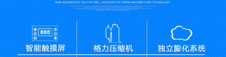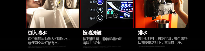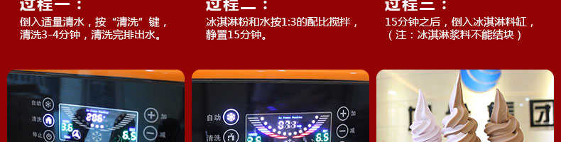 BQL-828立式冰淇淋機(jī),1.選用國際牌壓縮機(jī),輔以旭眾精湛工藝,大大縮短冰淇淋成型時(shí)間,高效節(jié)能;2.全新液晶智能觸控面板,簡單明了,多功能易操作;3.全新升級(jí)專業(yè)膨化泵,膨化率高,產(chǎn)量增加30%;4.一鍵清洗功能,省時(shí)方便;5.主要部件采用不銹鋼材質(zhì),時(shí)尚美觀,持久耐用;6.先進(jìn)的機(jī)械攪拌系統(tǒng),機(jī)器運(yùn)行穩(wěn)定可靠,低噪音,產(chǎn)品口感爽滑細(xì)嫩。