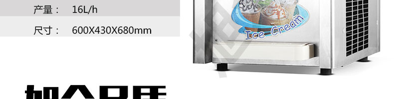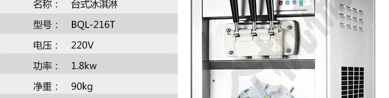 BQL-216T臺式冰淇淋機(jī),●選用國際名牌成熟制冷配套件和高效壓縮機(jī),融合旭眾精湛工藝輔以嚴(yán)格的質(zhì)量控制流程,使產(chǎn)品整體性能及品質(zhì)得以全面提升。●采用全數(shù)字電腦控制系統(tǒng),選用名牌優(yōu)質(zhì)電器元件,先進(jìn)的生產(chǎn)工藝,故障診斷,軟硬任意調(diào)制,自動修復(fù)功能,安全精確,可靠性更高?!駥I(yè)成熟制冷系統(tǒng)設(shè)計,選用世界名牌大功率專用壓縮機(jī),大大縮短冰淇淋成型時間,相同時間內(nèi)冰淇淋產(chǎn)量大幅度增加,使您生意火爆時依然得心應(yīng)手,為您創(chuàng)造財富?!癜踩椒€(wěn)的機(jī)械攪拌系統(tǒng),噪音更低、振動更小,使整機(jī)運(yùn)行性能達(dá)到國際先進(jìn)水平?!翊_保進(jìn)料溫度在0°C~35°C;環(huán)境溫度5°C~40°C勻可正常使用。