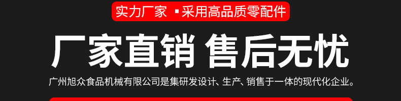 廣州旭眾食品機(jī)械有限公司是一家集科研開(kāi)發(fā),生產(chǎn)設(shè)計(jì),營(yíng)銷(xiāo)服務(wù)為一體的現(xiàn)代化生產(chǎn)企業(yè)?,F(xiàn)代化生產(chǎn)車(chē)間,精湛制造技術(shù),所產(chǎn)機(jī)械歷經(jīng)市場(chǎng)重重考驗(yàn),不斷贏得海內(nèi)外客戶的贊譽(yù)。