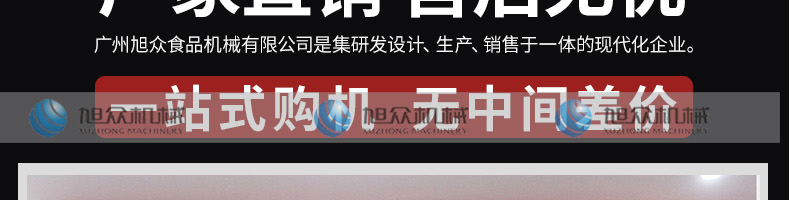 廣州旭眾食品機(jī)械有限公司是一家集科研開(kāi)發(fā),生產(chǎn)設(shè)計(jì),營(yíng)銷(xiāo)服務(wù)為一體的現(xiàn)代化生產(chǎn)企業(yè)。現(xiàn)代化生產(chǎn)車(chē)間,精湛制造技術(shù),所產(chǎn)機(jī)械歷經(jīng)市場(chǎng)重重考驗(yàn),不斷贏得海內(nèi)外客戶的贊譽(yù)。