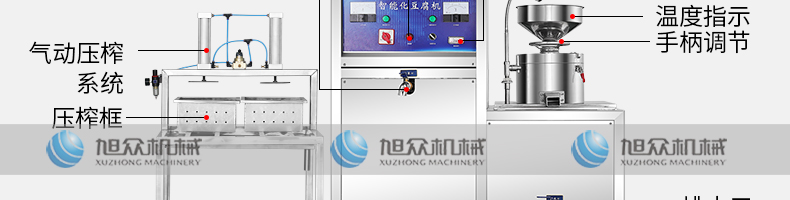XZ-200 智能化豆腐機(jī),蒸汽煮熟、長久保鮮。通過水蒸氣高溫加熱煮熟,保持原有光澤與鮮美。人性化設(shè)計(jì)操作簡單,多項(xiàng)監(jiān)測(cè)機(jī)械的安全性。