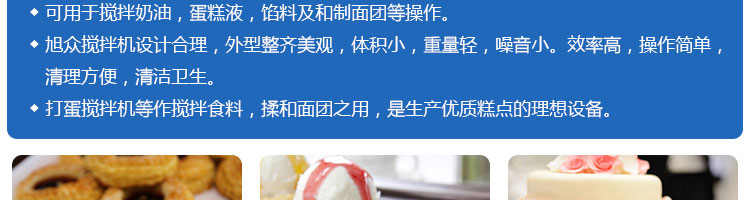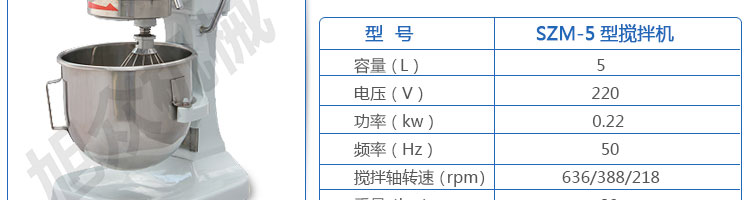 SZM-5型攪拌機(jī),可用于攪拌奶油、蛋糕液、餡料及和制面團(tuán)等操作。打蛋攪拌機(jī)等作攪拌食料、揉和面團(tuán)之用,是生產(chǎn)優(yōu)質(zhì)糕點(diǎn)的理想設(shè)備,適用于酒店、飯店、學(xué)校部門(mén)、面包屋以及食品廠家。