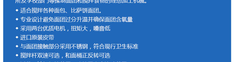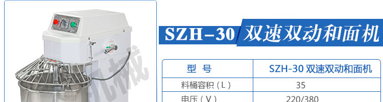 SZH-30型雙速雙動和面機(jī),本機(jī)適合攪拌各種面包、包子、饅頭、湯圓、披薩餅面團(tuán),專業(yè)設(shè)計避免面團(tuán)過分升溫并確保面團(tuán)含氧量。過載、缺相保護(hù)裝置,防護(hù)罩安全連動裝置。