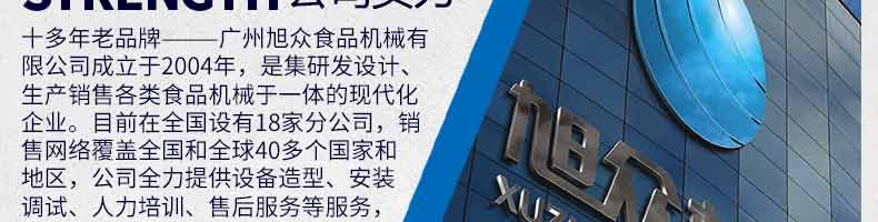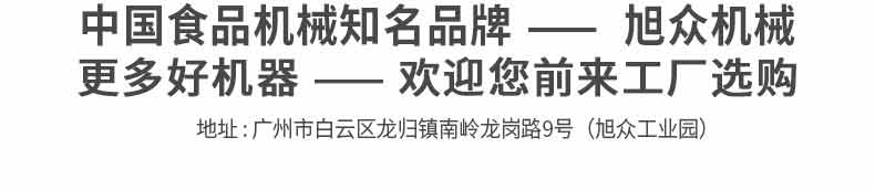 廣州旭眾食品機(jī)械有限公司是一家集科研開發(fā),生產(chǎn)設(shè)計(jì),營(yíng)銷服務(wù)為一體的現(xiàn)代化生產(chǎn)企業(yè)。現(xiàn)代化生產(chǎn)車間,精湛制造技術(shù),所產(chǎn)機(jī)械歷經(jīng)市場(chǎng)重重考驗(yàn),不斷贏得海內(nèi)外客戶的贊譽(yù)。