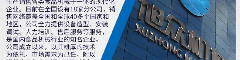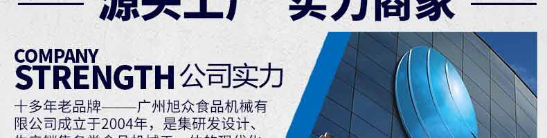 廣州旭眾食品機械有限公司是一家集科研開發(fā),生產(chǎn)設(shè)計,營銷服務為一體的現(xiàn)代化生產(chǎn)企業(yè)?,F(xiàn)代化生產(chǎn)車間,精湛制造技術(shù),所產(chǎn)機械歷經(jīng)市場重重考驗,不斷贏得海內(nèi)外客戶的贊譽。
