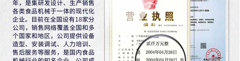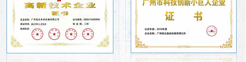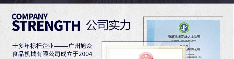 廣州旭眾食品機械有限公司是一家集科研開發(fā),生產(chǎn)設(shè)計,營銷服務(wù)為一體的現(xiàn)代化生產(chǎn)企業(yè)。現(xiàn)代化生產(chǎn)車間,精湛制造技術(shù),所產(chǎn)機械歷經(jīng)市場重重考驗,不斷贏得海內(nèi)外客戶的贊譽。