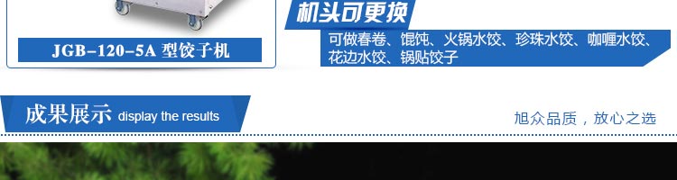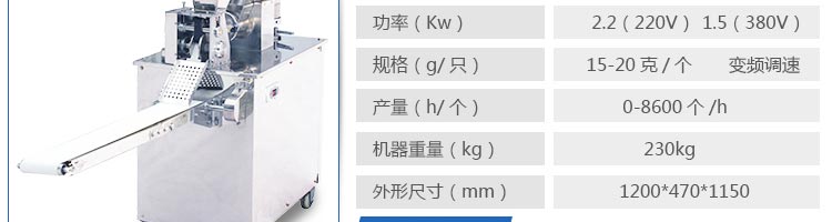 JGB-120-5A型輸送帶餃子機,本機是一款可生產(chǎn)各種肉餡、肉菜混合餡、全菜餡及其他種餡餃子的設(shè)備。一機多用途,只要更換模具,就可制作不同的食品,如春卷、餛飩、咖喱角、鍋貼等。適用于賓館、飯店、餐廳、團體食堂加工,幼兒園、速凍餃子生產(chǎn)。