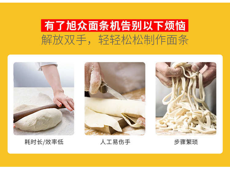 MTJ-30型臺式面條機(jī)(卡把式),1小時(shí)可做60斤面條快速做勁道手搟面,有了旭眾面條機(jī)告別以下煩惱解放雙手,輕輕松松制作面條