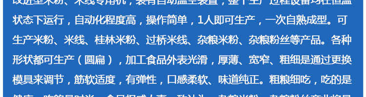 SZ-60不銹鋼米粉機,可生產(chǎn)米粉、米線、桂林米粉、過橋米線、年糕、糍粑等產(chǎn)品。各種形狀都可生產(chǎn)(圓、扁),加工食品外表光滑,厚薄、寬窄、粗細均勻可調(diào),筋軟適度,有彈性,口感柔軟、味道純正。