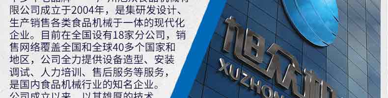 廣州旭眾食品機(jī)械有限公司是一家集科研開發(fā),生產(chǎn)設(shè)計(jì),營銷服務(wù)為一體的現(xiàn)代化生產(chǎn)企業(yè)?,F(xiàn)代化生產(chǎn)車間,精湛制造技術(shù),所產(chǎn)機(jī)械歷經(jīng)市場重重考驗(yàn),不斷贏得海內(nèi)外客戶的贊譽(yù)。