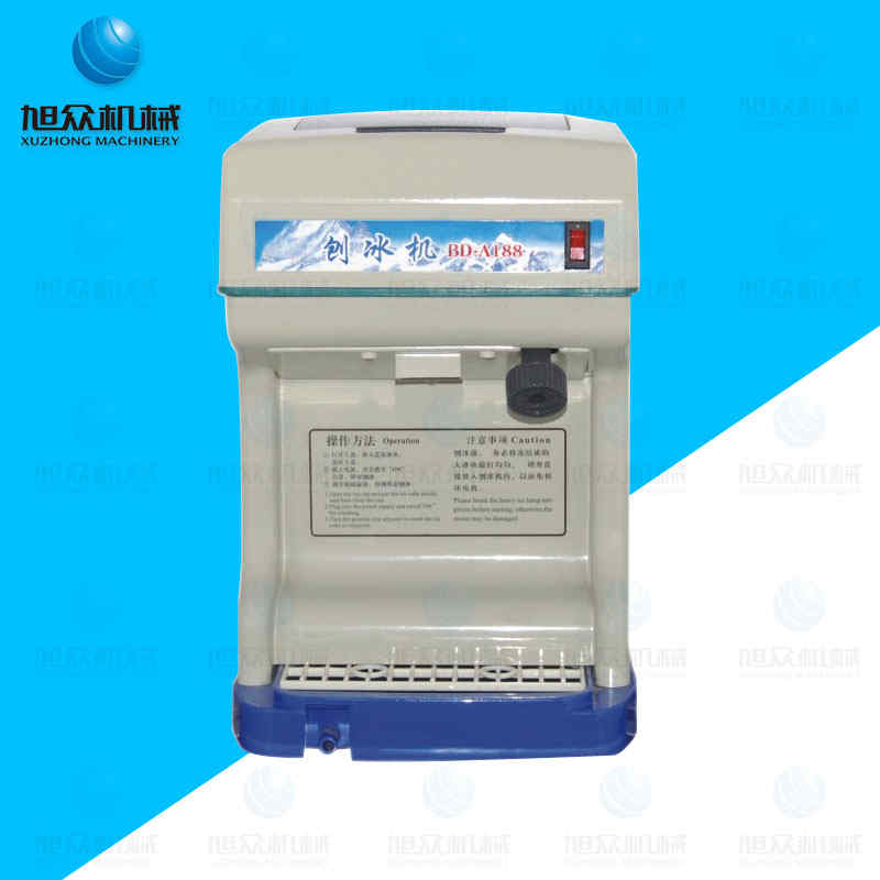 A188刨冰機(jī),可根據(jù)需要調(diào)整刀刃調(diào)解柄即可加工各種粗細(xì)不同的刨冰。本機(jī)結(jié)構(gòu)緊湊、運(yùn)轉(zhuǎn)平穩(wěn)可靠,具有體積小、重量輕、外形美觀、操作方便、工作效率高等優(yōu)點(diǎn)。