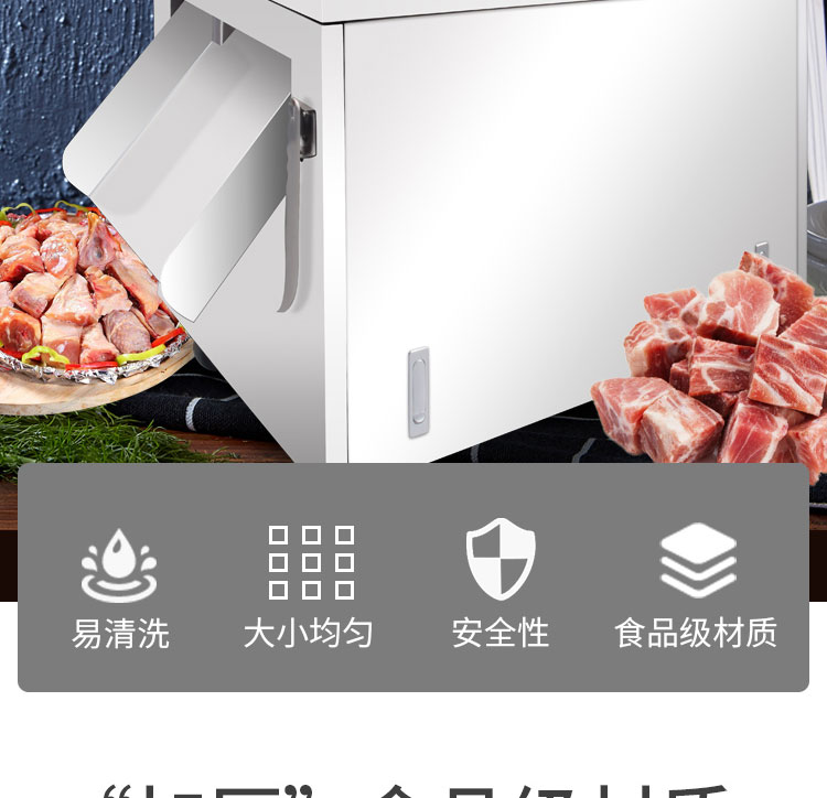 XZW-300魚禽類剁塊機(jī),色禽類剁塊機(jī)適合切凍肉帶骨/不帶骨。“加厚”食品級(jí)材質(zhì)安全衛(wèi)生質(zhì)量保證。傳送帶推進(jìn)物料提高效率節(jié)省力氣。