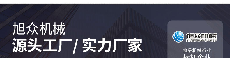 廣州旭眾食品機械有限公司是一家集科研開發(fā),生產(chǎn)設(shè)計,營銷服務(wù)為一體的現(xiàn)代化生產(chǎn)企業(yè)?,F(xiàn)代化生產(chǎn)車間,精湛制造技術(shù),所產(chǎn)機械歷經(jīng)市場重重考驗,不斷贏得海內(nèi)外客戶的贊譽。
