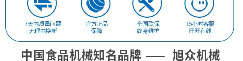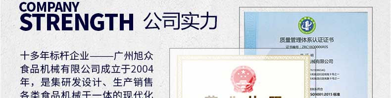 廣州旭眾食品機(jī)械有限公司是一家集科研開發(fā),生產(chǎn)設(shè)計(jì),營銷服務(wù)為一體的現(xiàn)代化生產(chǎn)企業(yè)?,F(xiàn)代化生產(chǎn)車間,精湛制造技術(shù),所產(chǎn)機(jī)械歷經(jīng)市場重重考驗(yàn),不斷贏得海內(nèi)外客戶的贊譽(yù)。