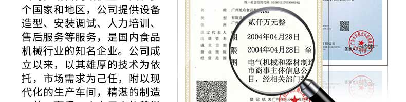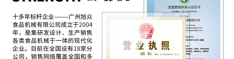 廣州旭眾食品機械有限公司是一家集科研開發(fā),生產(chǎn)設計,營銷服務為一體的現(xiàn)代化生產(chǎn)企業(yè)?,F(xiàn)代化生產(chǎn)車間,精湛制造技術(shù),所產(chǎn)機械歷經(jīng)市場重重考驗,不斷贏得海內(nèi)外客戶的贊譽。