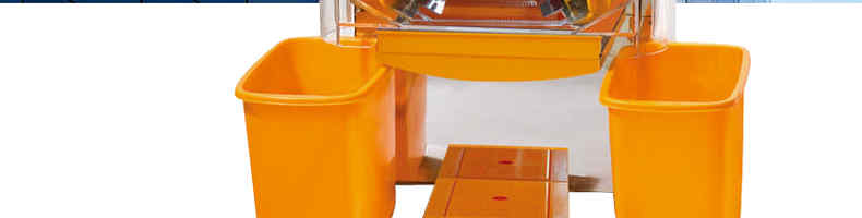 2000E-4自動榨橙汁機,該機設(shè)計合理,采取擠壓式,鮮橙經(jīng)消毒、漂洗后,直接進入機器 ,自動剝皮、榨汁、過濾,現(xiàn)榨現(xiàn)飲,不僅適用于小飲店、水果店、飯店、賓館、酒吧、卡廳、茶秀、咖啡屋等,也適用于成功人士的家庭使用。