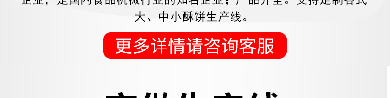 酥餅機生產(chǎn)線,每小時產(chǎn)量高達5000個,生產(chǎn)速度快、效率高。生產(chǎn)速度快,效率高,生產(chǎn)流程流暢,各環(huán)節(jié) 都輔以高密度電控設備控制,不賭面,不破酥等現(xiàn)象。不賭面輕松應對大客流、不破酥抓住客戶的食欲。