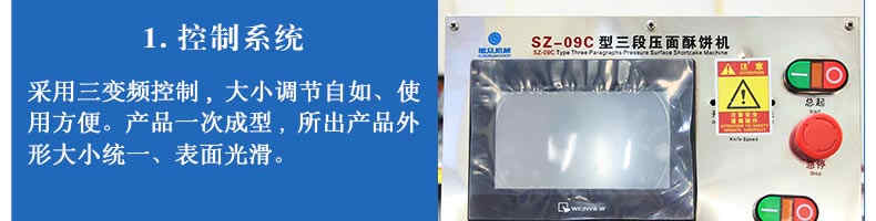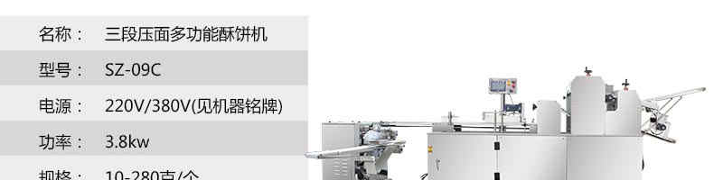 SZ-09C三段壓面蘇式月餅機(jī),生產(chǎn)速度、制品大小、重量、皮餡比例可隨時(shí)調(diào)整、變更。適用于蘇式月餅、綠豆餅、老婆餅、蔥油餅、鮮花餅、肉松餅、金華酥餅等。適用于大、中型糕餅生產(chǎn)廠家,免費(fèi)提供工藝技術(shù)。