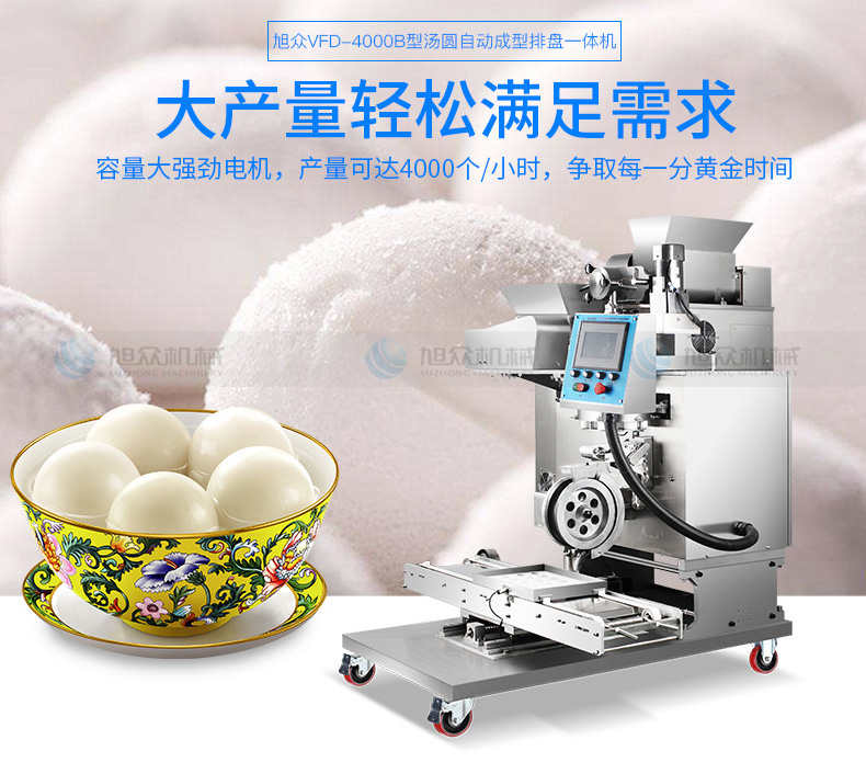 VFD-4000B湯丸機,告別手工時代旭僉多功能湯圓機輕松解決問題。大產(chǎn)量輕松滿足需求容量大強勁電機,產(chǎn)量可達(dá)4000個小時,爭取每一分黃金時間