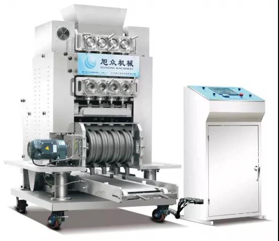 XZ4T-1502型多頭湯圓成型排盤機(jī)是一款依外皮及餡料的種類不同,可制作出湯圓、豆沙包、南瓜餅、奶黃包、含餡饅頭、玉兔包等包餡食品,并可自動(dòng)排盤的設(shè)備。功能齊全,適用性廣,自動(dòng)化程度高,定量準(zhǔn)確,操作簡單,只要將面團(tuán)與餡料放入進(jìn)料口,開機(jī)便可自動(dòng)搓圓、成型,制品不易變形。