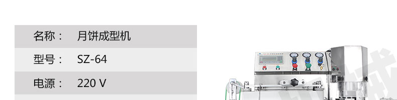 SZ-64月餅自動成型機,可同于制作各種月餅,適合印制各種月餅。適用于蛋糕房、休閑食品廠、食品加工產(chǎn)、面包房、月餅加工廠、超市、學(xué)校、食堂等各種工作場所。可滿足不同客戶群體。免費提供工藝技術(shù)。